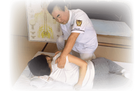 一時的に楽になる揉みほぐしのような対処療法ではなく、骨の歪みと姿勢を矯正する手技療法でおこないます。